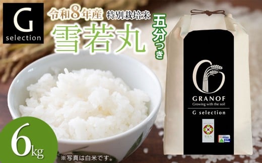 - 【令和8年産先行予約】 特別栽培米 Gセレクション 雪若丸 6kg(6kg×1袋) 【五分づき】 山形県鶴岡市産 株式会社グラノフ