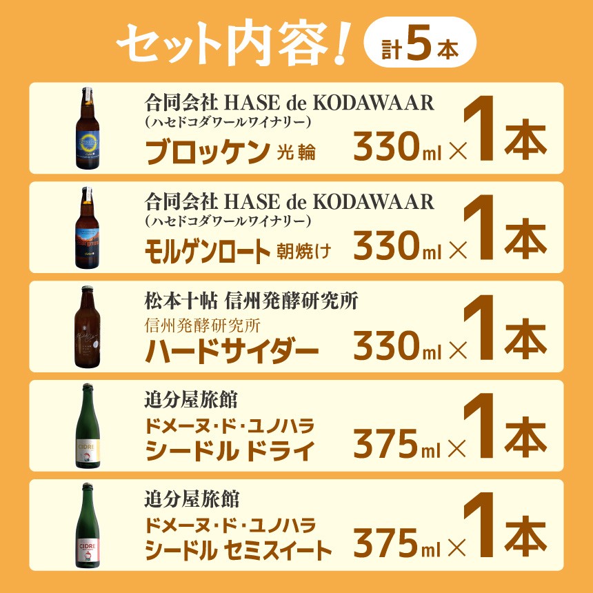 - 松本シードル5種各1本セット|シードル ハードサイダー りんご アップルワイン お試し 飲み比べ ふるさと納税 松本市 長野県