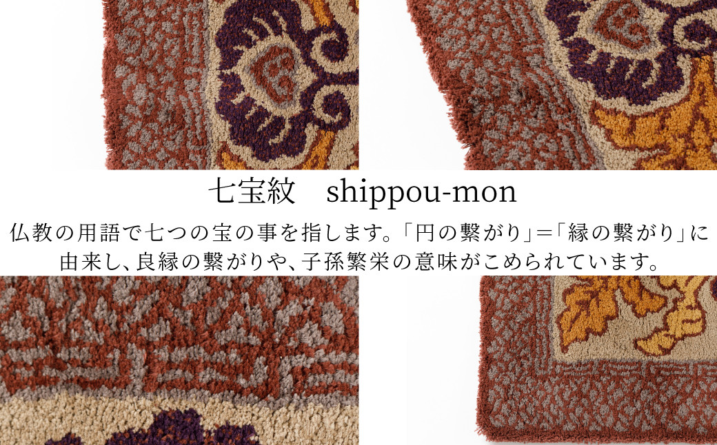 - 【鍋島緞通吉島家】鍋島緞通/手刺繍 蟹牡丹文縁七宝 茶地桑色