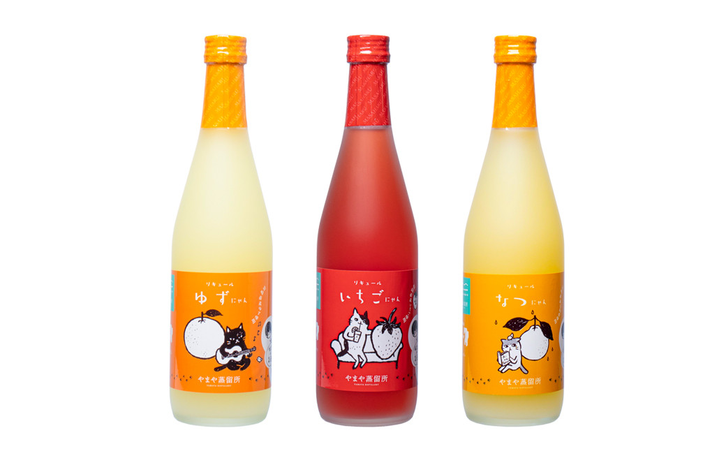 - やまやにゃん リキュール飲み比べ3種 ゆず・日向夏・いちご 各500ml 個別化粧箱入り<1.4-1>