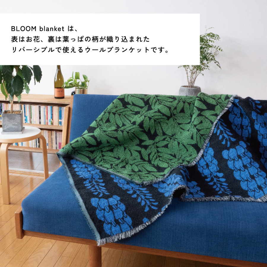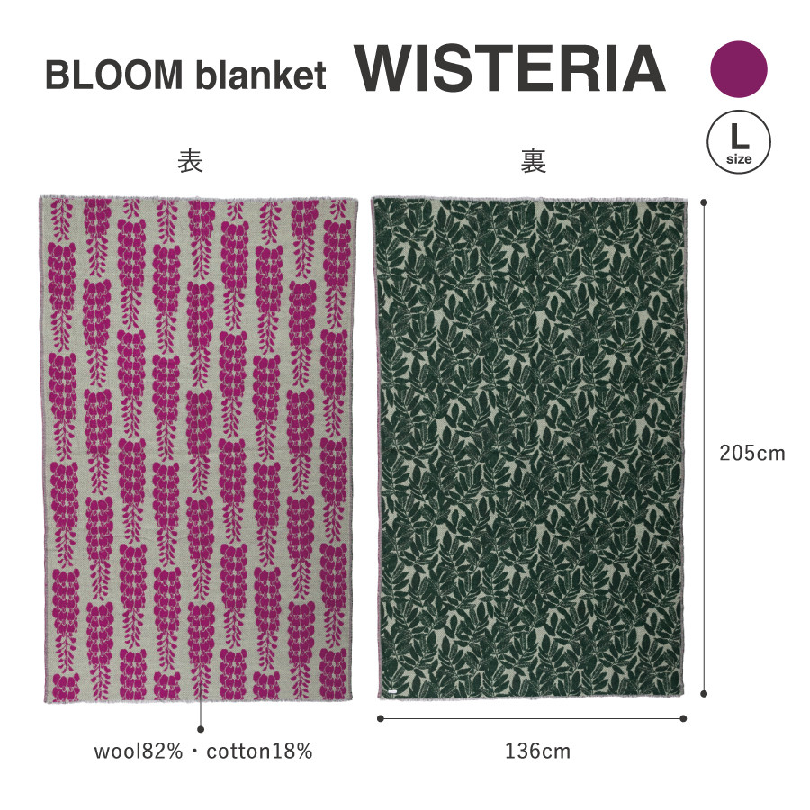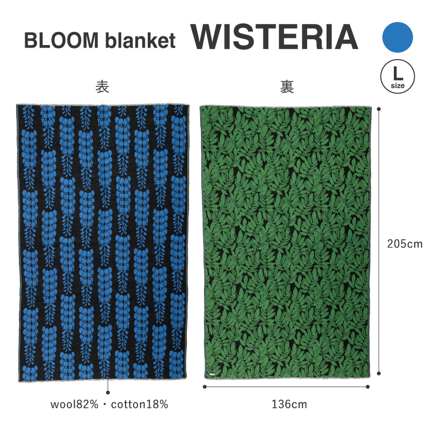 - YURI HIMURO BLOOM blanket (WISTERIA / L) ブランケット ウール コットン 【選べるカラー】ブルー パープル L 136cm×205cm 花柄 葉柄 フジ リバーシブル ブランド プレゼント ギフト 織物 YURI HIMURO 山梨 富士吉田