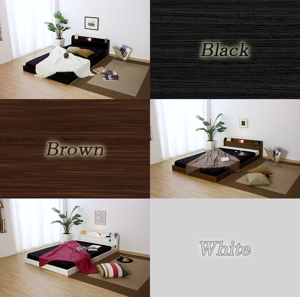 【組立サービス付】268 セミダブルサイズ 棚コンセント照明付フロアベッド 国産ボンネルコイルマットレス(10816B)付(1497)