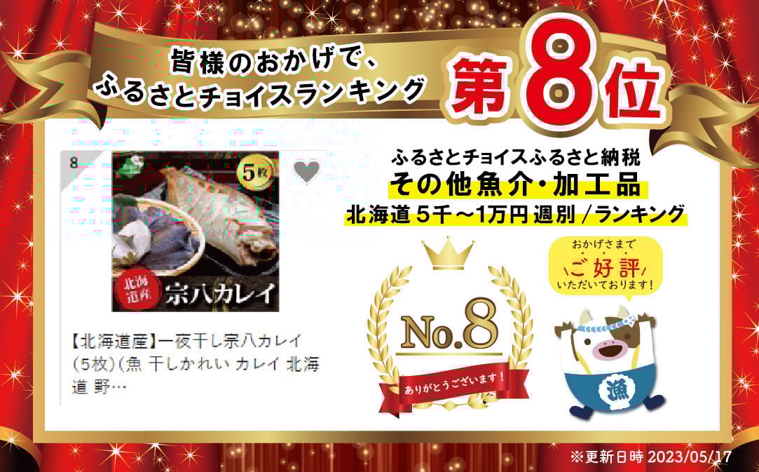 - 【北海道産】一夜干し宗八カレイ(5枚)【SS0000011】(魚 干しかれい カレイ 北海道 野付 別海町 ふるさとチョイス ふるさと納税 仕組み キャンペーン 限度額 計算 ランキング やり方 シミュレーション チョイス チョイスマイル )