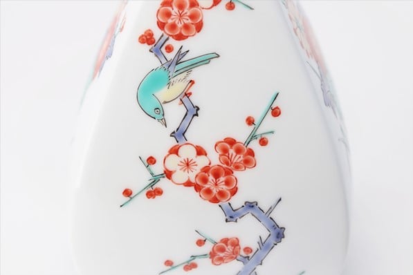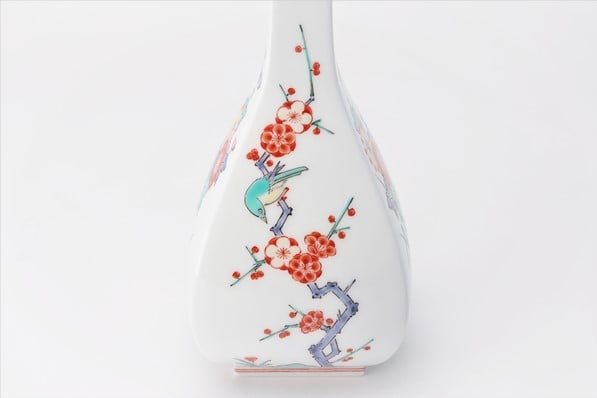 - 【有田焼】柿右衛門窯 菊梅鳥文角形一輪生