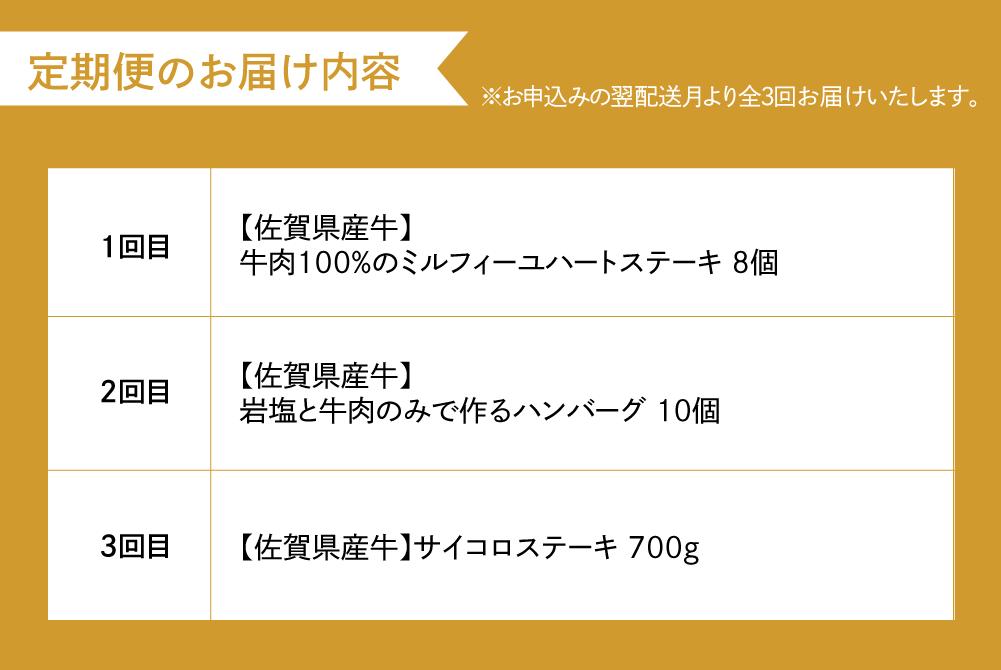 - 【定期便セット】全3回 卵・小麦粉・食品添加物不使用 佐賀県産牛ハンバーグ&ステーキ TOMMY BEEF