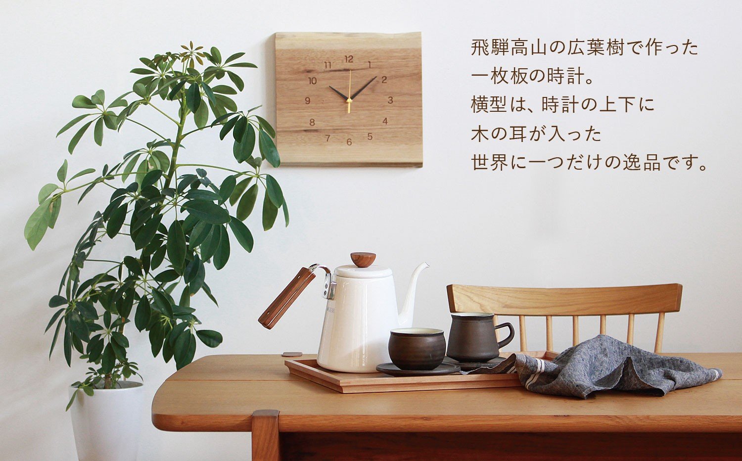 - 飛騨の天然木の掛け時計(横型)| 時計 クロック くり くるみ 植物由来オイル 木製 無垢材 天然木 木製 飛騨の匠 工芸 時計 木工 職人 壁掛け時計 時計 飛騨高山 リビング ヒダコレ家具 GF022VP