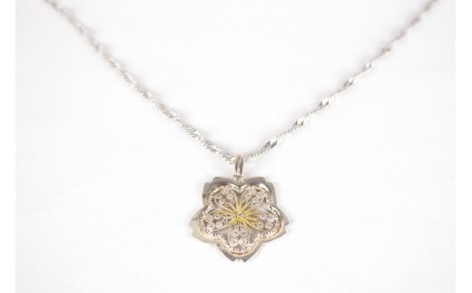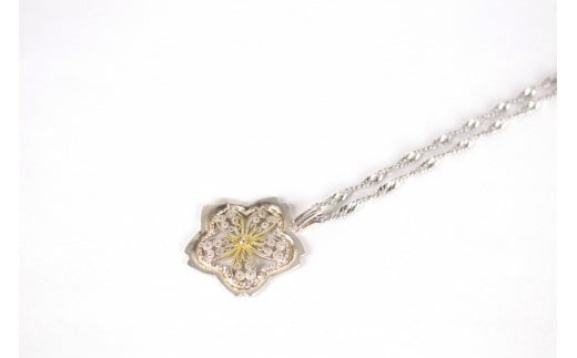 唐草ペンダント(さくら)大・部分金彩 〈 アクセサリー ネックレス 春 ギフト レディース 女性 カジュアル 上品 フォーマル 普段使い シルバー ゴールド シンプル 48cm 〉