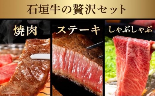 【2025年11月以降順次発送】【定期便】特選石垣牛焼肉&ステーキ&しゃぶしゃぶセット | 沖縄 石垣 特選 牛 赤身 モモ ランプ カルビ リブ ロース 肉 焼肉 ステーキ しゃぶしゃぶ 真空 冷凍 タレ 定期便
