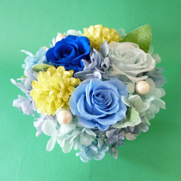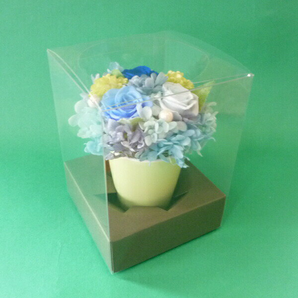 【ふるさと納税】プリザーブドフラワー ポットアレンジ (ブルーグリーン)【14001601】