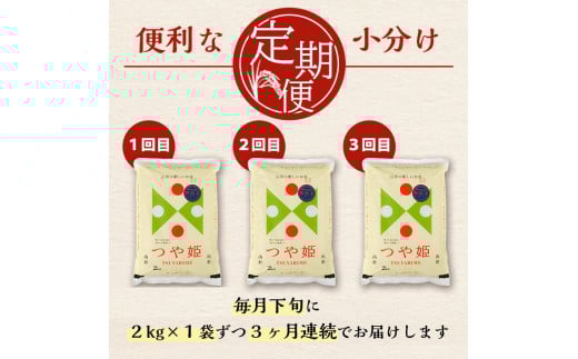 - ≪3ヶ月定期便≫ 無洗米 つや姫 2kg×3ヶ月連続 計6kg 特別栽培米 山形県庄内産 酒田倉庫 SA SC0659