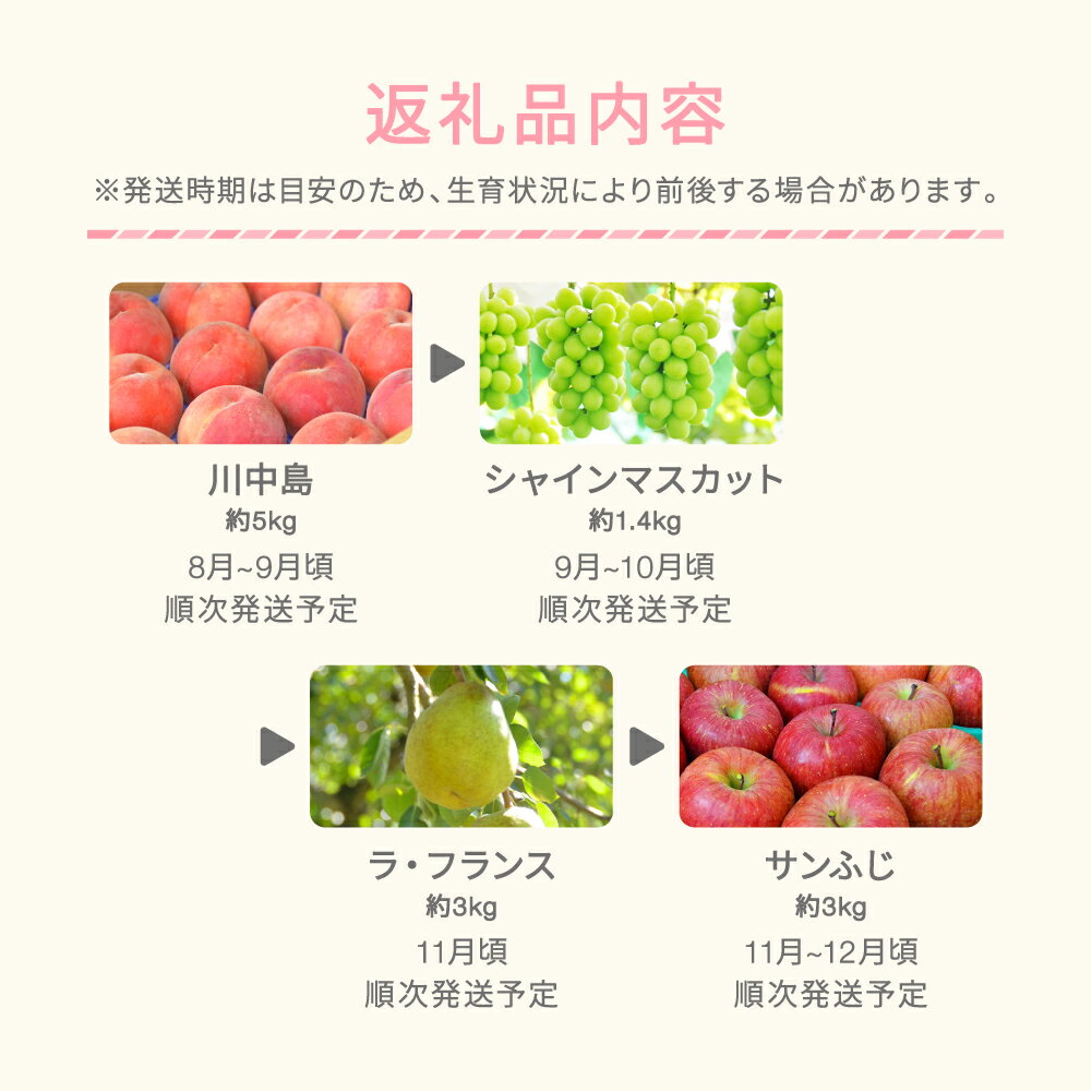 - 【ふるさと納税】【先行予約】フルーツ定期便全4回 川中島 シャインマスカット ラ・フランス サンふじ 2026年産 山形県産 ja-ft4xx