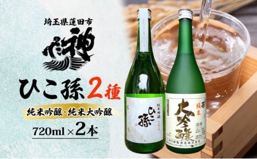 神亀酒造 ひこ孫2種セット 各720ml × 2 計1440ml 埼玉県 蓮田市 お酒 晩酌 家飲み 日本酒 お燗 食事と一緒に楽しめる 純米吟醸酒 純米大吟醸酒 日本酒 飲み比べ 埼玉県 蓮田市 熱燗 ぬる燗 常温 冷や 辛口 お祝い ギフト 地酒 山田錦