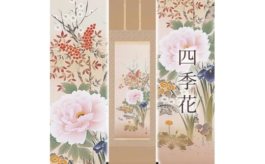 掛け軸「四季花」 富岡蘇峰 尺五立 サイズ:54.5×190cm 桐箱付 掛け軸 表装 床の間