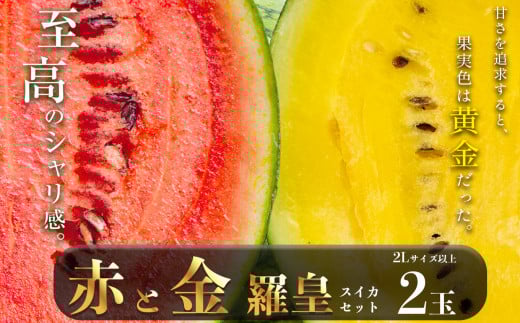 赤と金 羅皇 セット 大玉 スイカ 2玉 『 かめまる食堂 』 | フルーツ 果物 くだもの すいか 西瓜 赤 金 熊本県 玉名市