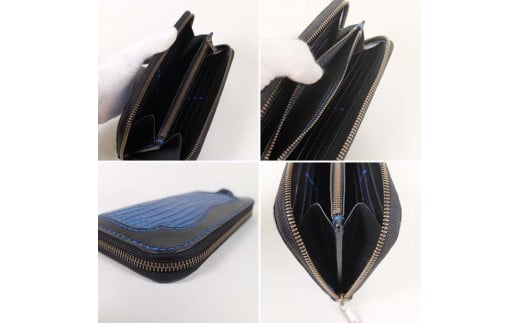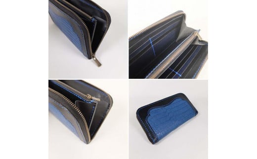 - 阿波レザー本藍染スモールクロコ長財布 CRORW-I