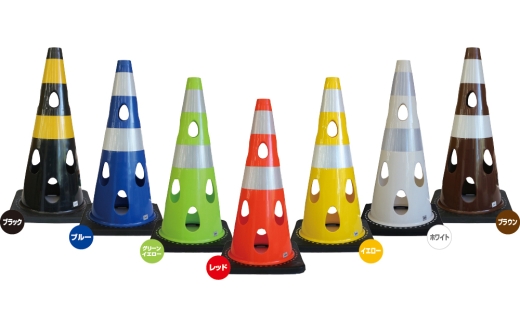 - 穴あきコーン 1個 イエロー / カラーコーン 選べる色 工事用 屋外用 倒れにくい 重り付き ウェイト一体型 割れにくい 駐車場用品 工事現場用品 安全対策用品 警告灯対応 SDGs配慮 風対策 千葉県 No.349-05