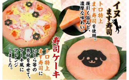 - [№5313-0571]「イヌ」ます寿司 寿司ケーキセット ギフトBOX 冷蔵 贈答 サプライズ トロ特上 マス寿司 海苔 ちらし寿司 チラシ ギフト 笹寿司 ホールケーキ 押し寿司 富山名物 映え グルメ 記念日 パーティー お祝い お取り寄せ ヒロ助 送料無料 富山県 黒部市