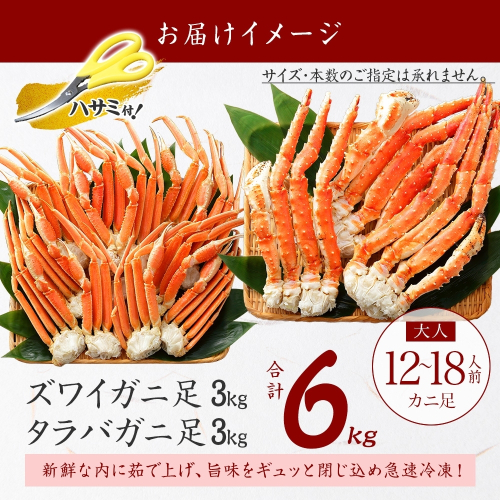 - 3188. 二大蟹食べ比べセット 計6kg(タラバ足 3kg/ズワイ足 3kg) 食べ方ガイド・専用ハサミ付 カニ かに 蟹 たらば タラバ タラバガニ ずわい ズワイ ズワイガニ 海鮮 送料無料 北海道 弟子屈町