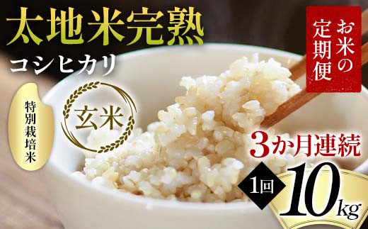【先行予約】お米の定期便 特別栽培米 太地米完熟 【こしひかり】 玄米10kg×3か月連続 ブランド米 お米 人気 F7X-0712