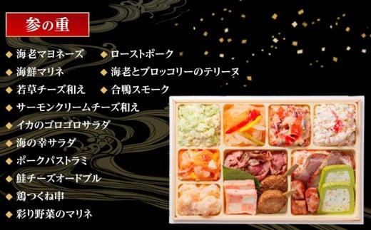 - 【 玉清屋 】 生おせち 春彩 和洋中三段重 43品(3~5人前) 冷蔵発送・12/31到着限定●