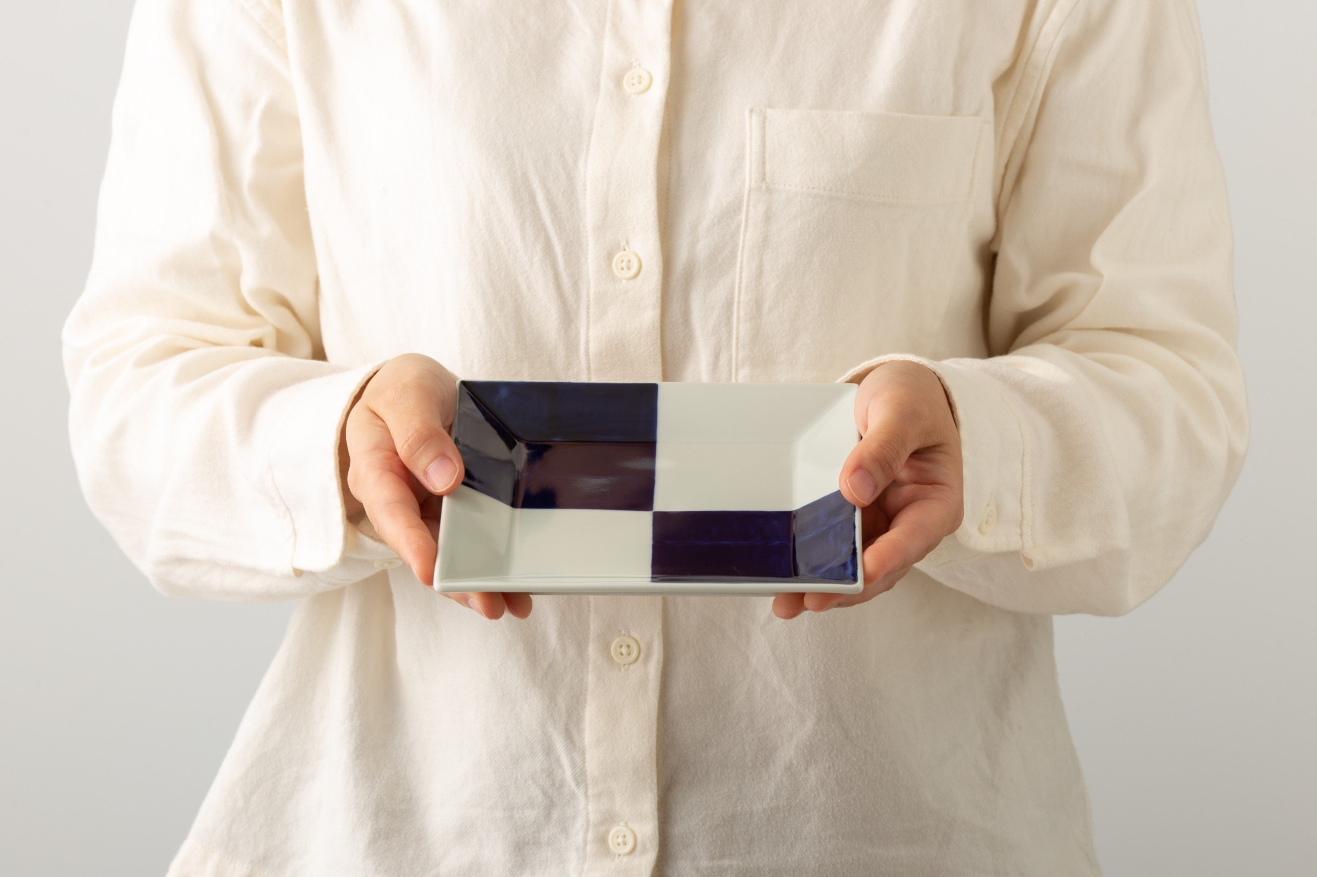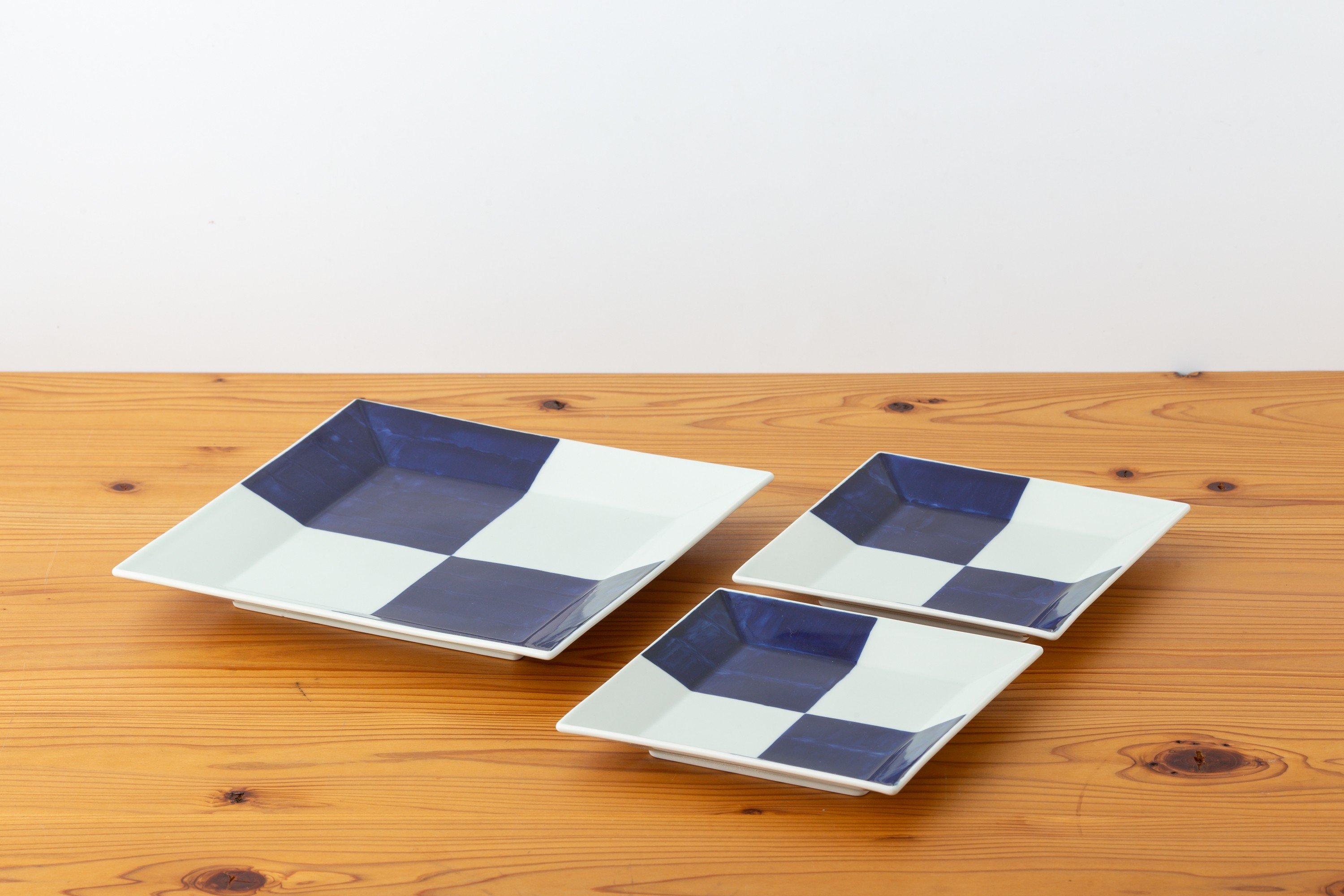 - 【セット】カネアオ 有田焼 市松スクエアプレート(L)×1枚・(M)×2枚 そうた窯