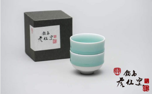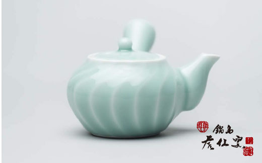 - 【セット】【鍋島焼】【虎仙窯】青磁曲線模様急須と青磁煎茶碗のセット