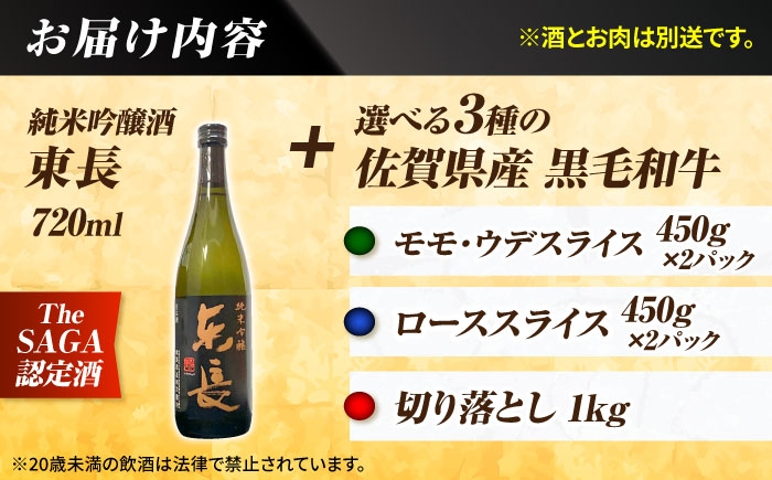 【晩酌セット 竹コース】選べる佐賀県産黒毛和牛 & 純米吟醸東長 720ml / 佐賀産和牛 白石 [IZZ036]
