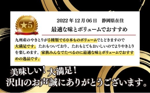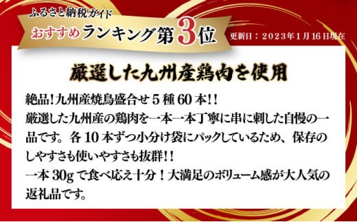 絶品!九州産焼鳥 5種盛合せ 60本(タレ付き)C-627