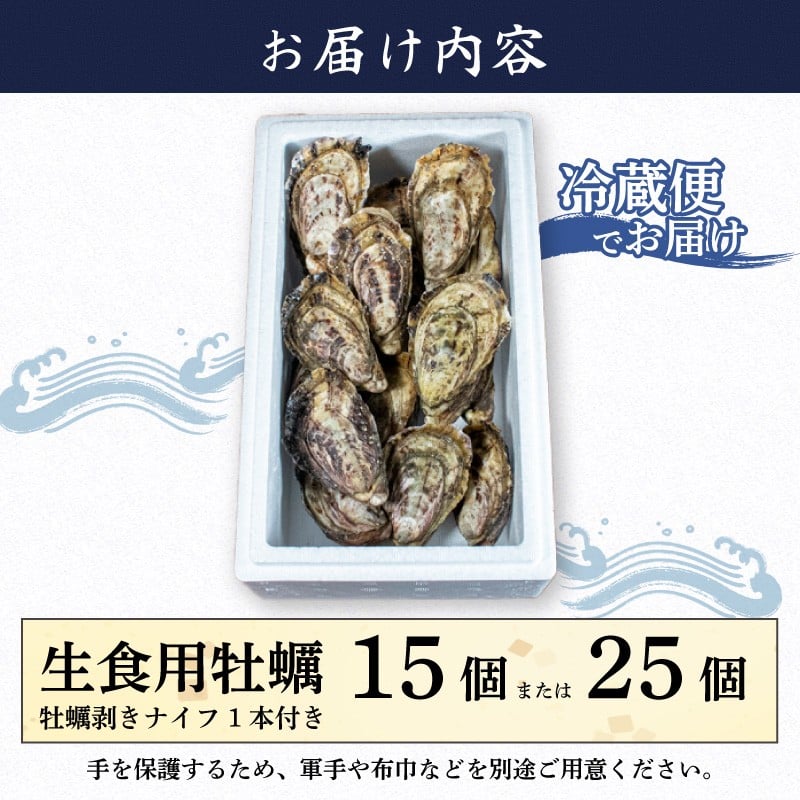 - 選べる容量 牡蠣 15個 ~ 25個 カキ 生牡蠣 オイスター 生食 殻付き ナイフ付き 産地直送 海鮮 海産物 魚貝類 新鮮 シングルシード 伊勢 志摩市 三重県 英虞湾産 シングルシードオイスター 「アマテラス」