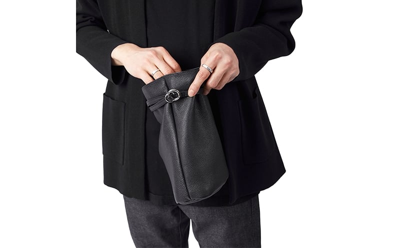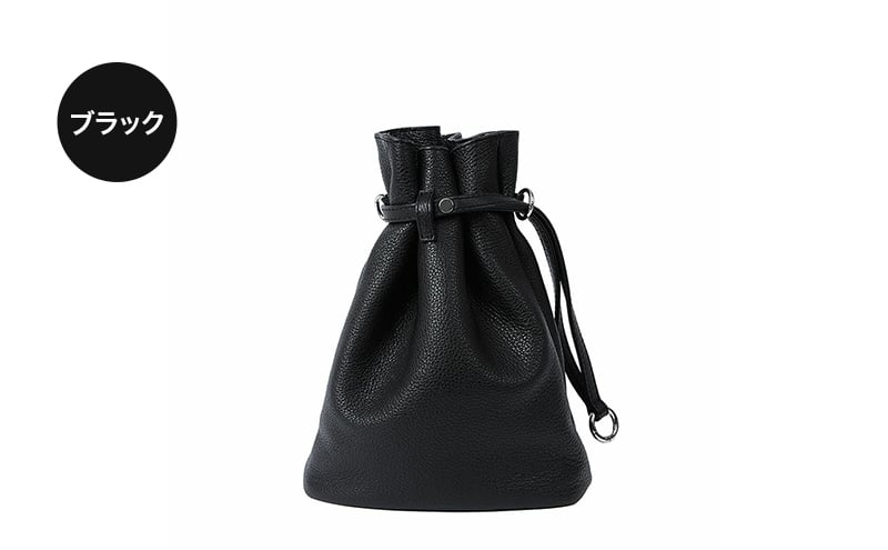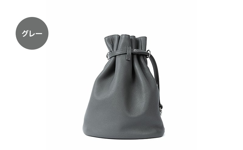 ソフトシュリンクレザー 巾着ポーチ 小物 巾着 ポーチ 底マチ ブラック グレー 牛革 レザー 東京都 文京区 [№5338-0435]