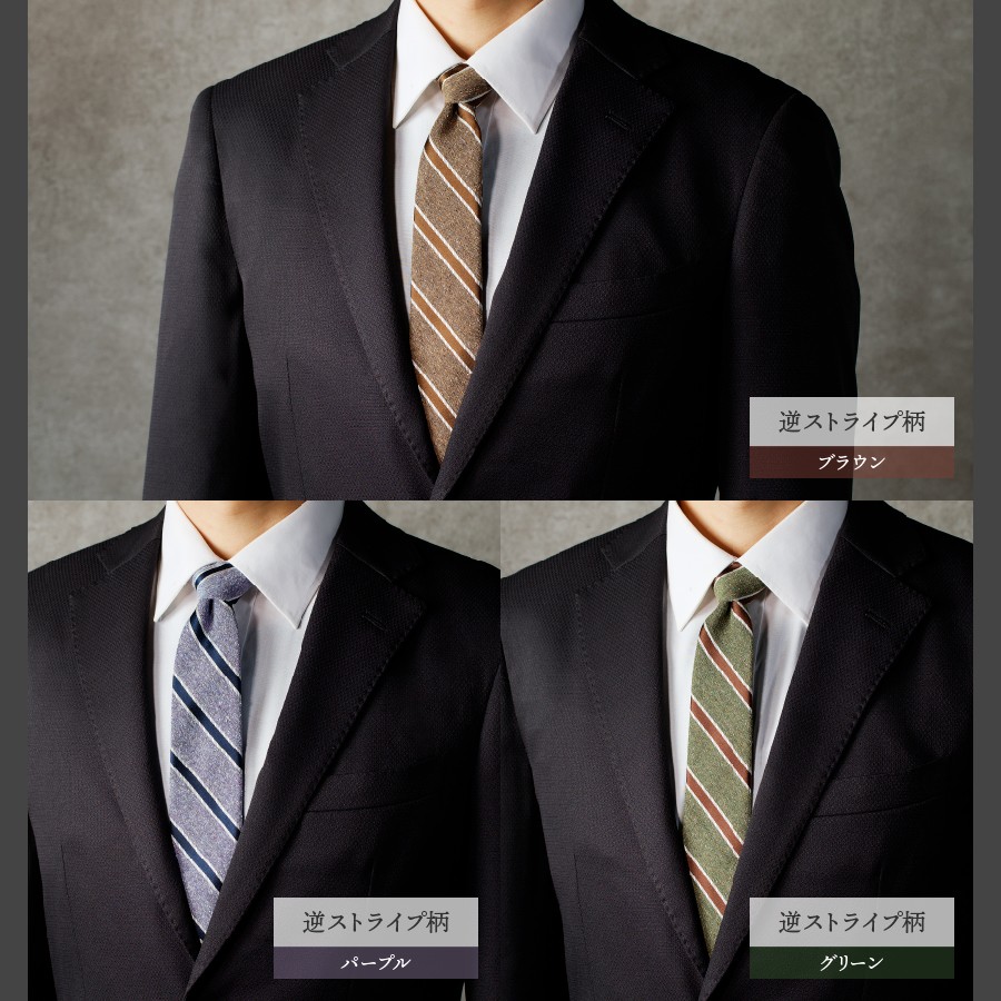 【Hadashin】メランジネクタイ 逆ストライプ柄 【選べるカラー】(ブラウン・パープル・グリーン・レンガ・グレー・ネイビー・ダークグレ・)ネクタイ シルク ビジネス ギフト 贈り物 山梨 富士吉田