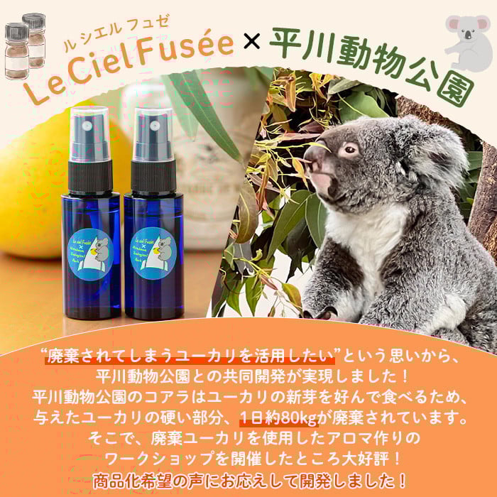【数量限定】平川動物公園 ルシエルフュゼ 共同開発 ルームフレグランス 2本入り廃棄ユーカリ+サワーポメロブレンド!【A-1669H】