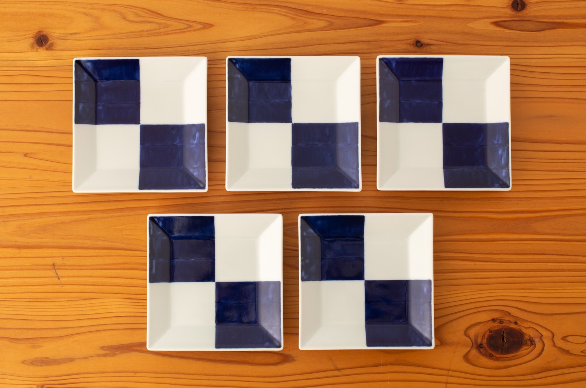 - カネアオ 有田焼 市松スクエアプレート(S)5枚セット そうた窯