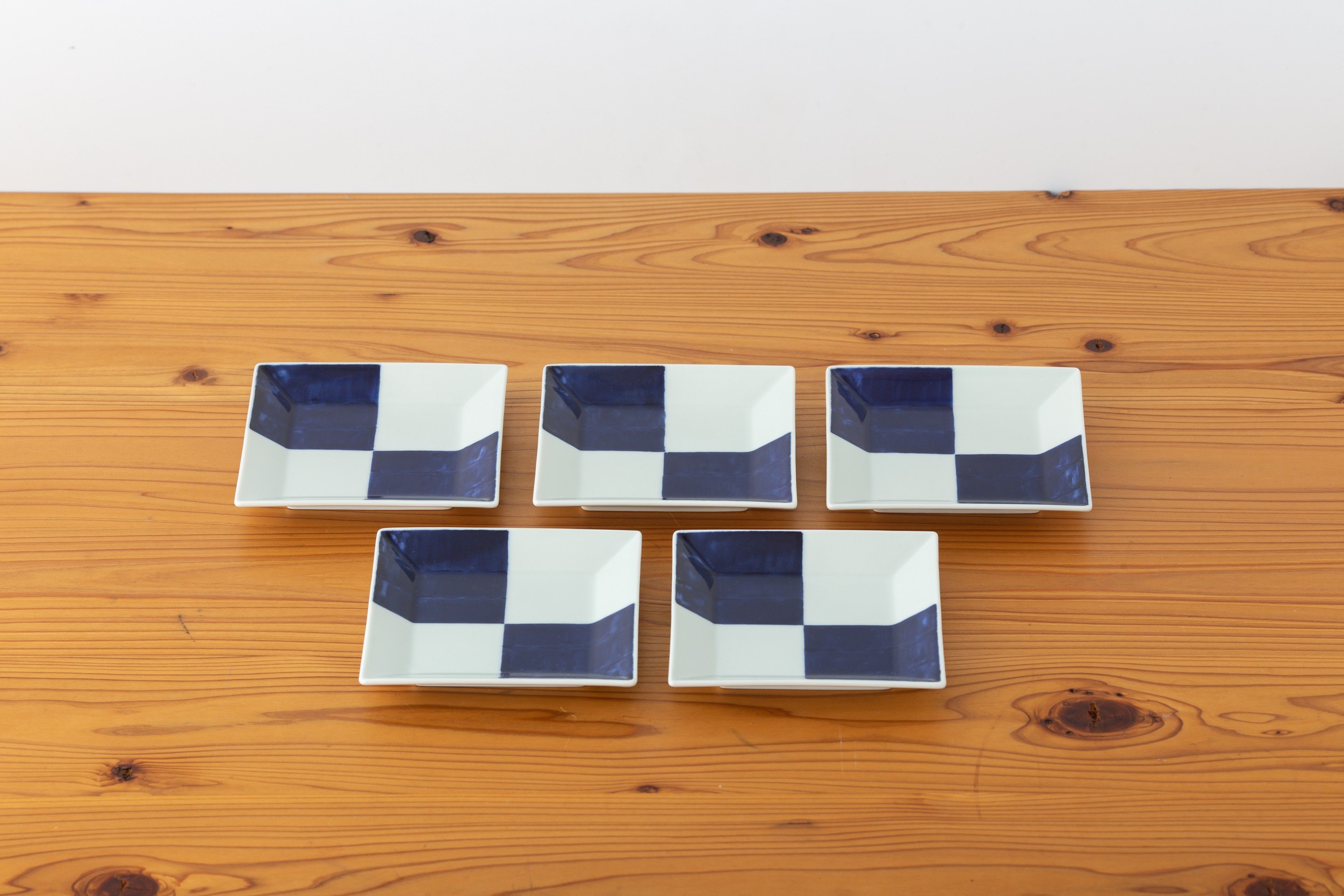 カネアオ 有田焼 市松スクエアプレート(S)5枚セット そうた窯