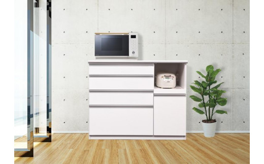 - 【開梱設置】 セイント キッチンカウンター 幅120cm キッチン収納 ハイタイプ レンジ台 完成品 大型レンジ対応 大川家具 ブラウン ホワイト