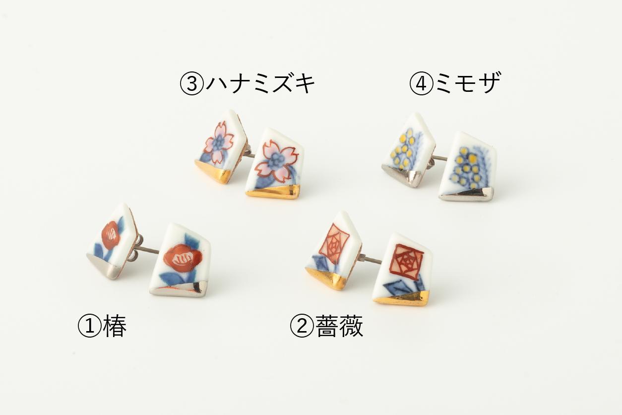- 有田焼【eb2】選べるアクセサリー S size 染錦(椿/薔薇/ハナミズキ/ミモザ)イヤリング/ピアス/ノンホールピアス 器とデザイン