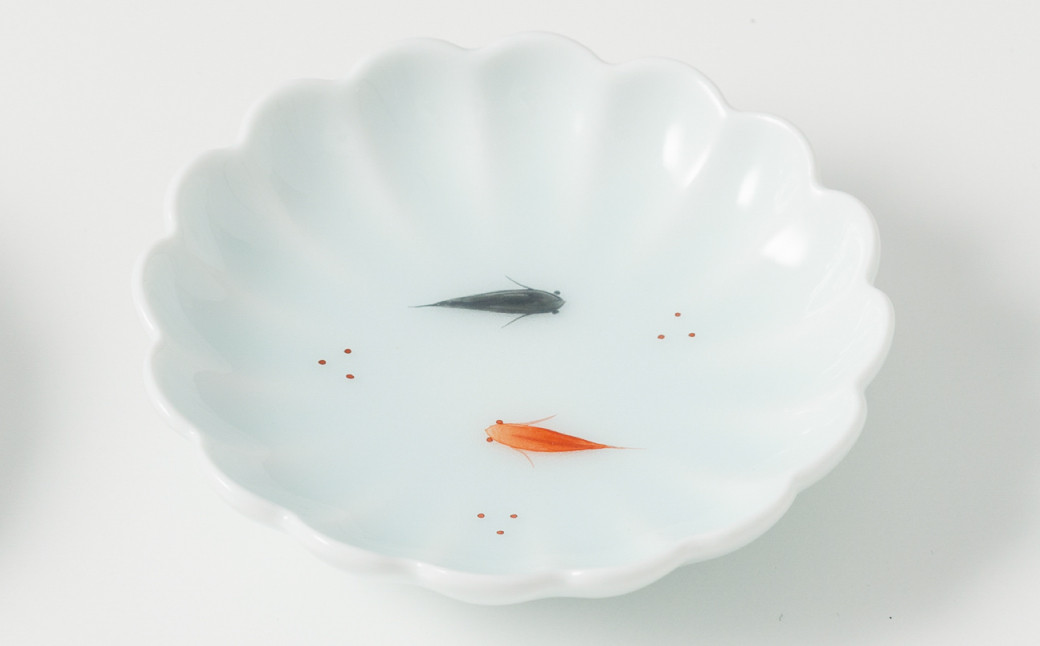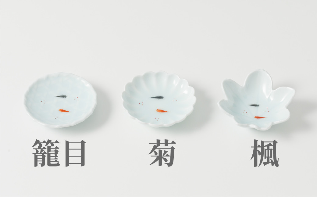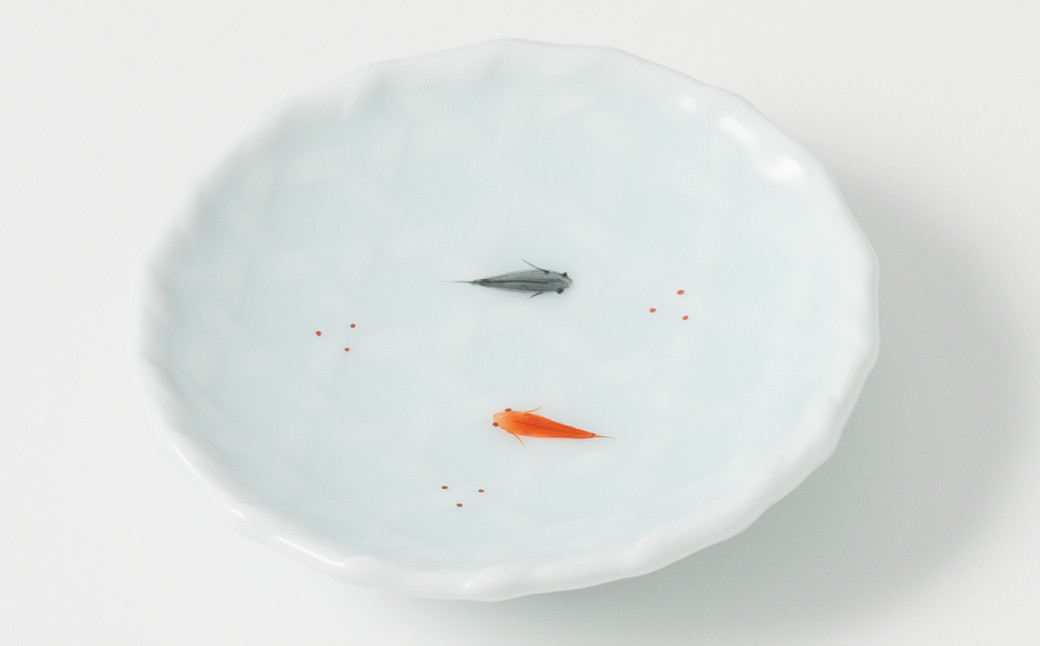 - 【鍋島虎仙窯】伊万里焼/青白磁メダカ豆皿3点セット