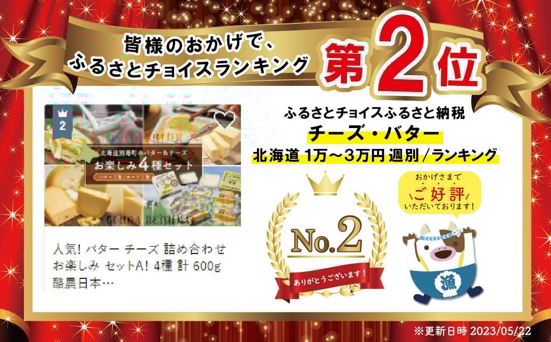 - 人気! バター チーズ 詰め合わせ お楽しみ セットA! 4種 計 600g 酪農日本一・別海町 酪農工場産直(4月発送)( バター 北海道 ふるさと納税 チーズ 訳あり 小分け 個包装 べつかいバター 送料無料 ギフト ふるさとチョイス ふるさと納税 仕組み キャンペーン 限度額 計算 ランキング シミュレーション )(G-12)