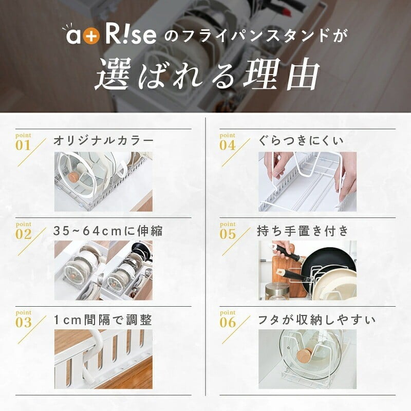 フライパンスタンド 【カラー選択可】伸縮 コンロ下 < ライズクリエイション アットライズ > シンク下 フライパン収納 キッチン収納 鍋 なべ 蓋 立てる収納 調理器具 フライパン置き キッチン 台所 シンク下収納 トレー 持ち手置き 整理 収納上手 整う おしゃれ 奈良県 奈良市