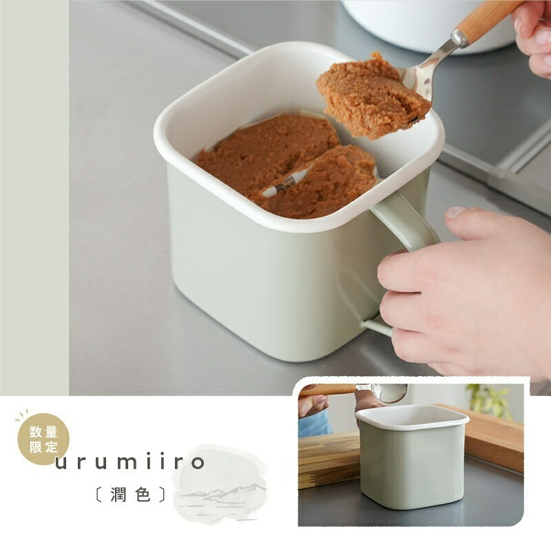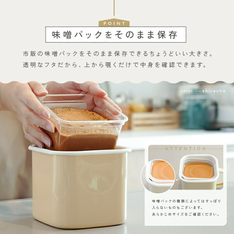 - 味噌容器 ホーロー 蓋付き みそ容器 【カラー選択可】〈 アットライズ 〉 味噌ポット 琺瑯 みそポット 味噌保存容器 味噌パックごと保存 角型 味噌ケース 味噌ストッカー 持ち手付き 保存容器 ふた付き 直火 オーブン 食洗機 奈良県 奈良市