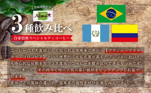 - 【Nanの木】自家焙煎スペシャルティコーヒー3種飲み比べセット [NK001-0] 【福岡県須恵町】