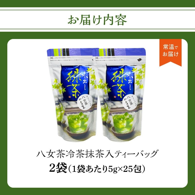 - 八女茶冷茶抹茶入ティーバッグ5g×25包×2袋【メール便】 手軽 お茶 簡単 冷茶 国産 緑茶 八女茶 一貫生産 福岡県 八女市