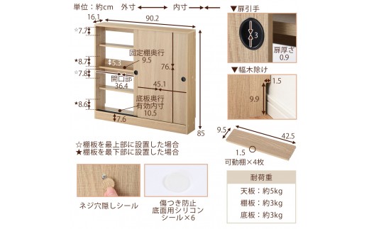 【完成品でお届け】カウンター下収納〔幅90cm・奥行15cm〕(選べる3色)カウンター 下 収納 幅90cm カウンター下収納 引き戸 薄型 おしゃれ キッチン カウンター下 本棚 スリム 食器棚 ロータイプ KKANRA945043