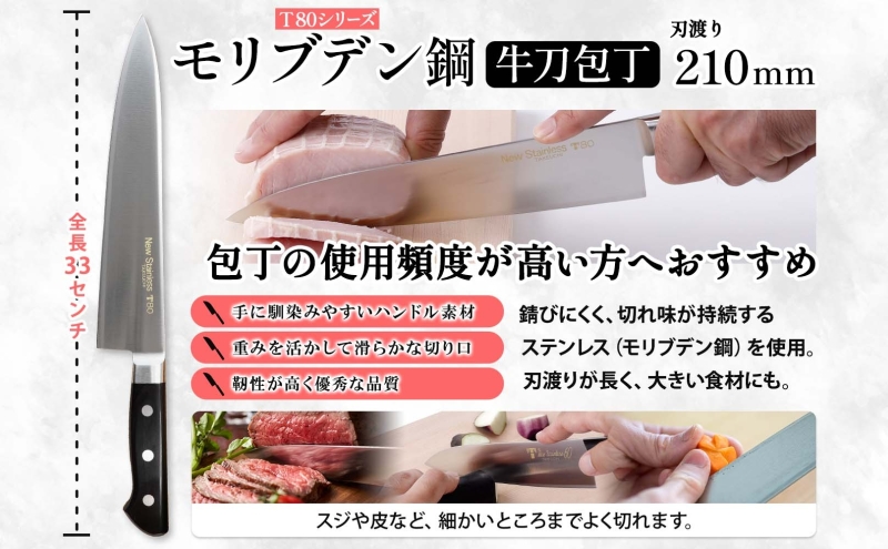 - T80シリーズ 牛刀 210mm ペティナイフ120mm 包丁 シェフナイフ ナイフ キッチン用品 調理器具 キッチングッズ 切れ味 錆びにくい 洋包丁 モリブデン鋼 高品質 切れ味 プロ仕様 耐久性 日本製 料理 プレゼント 竹内刃物製作所 岐阜県 美濃市