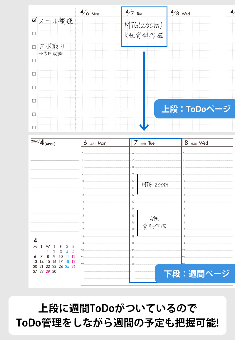セパレートダイアリー ウィークリー&マンスリーA5 ラウンドカバー付き「4月始まり/ホワイトベージュ」[082I02-05]