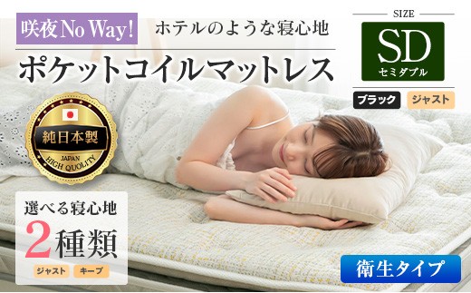 マットレス セミダブル 咲夜No Way! 抗ウイルス加工 衛生タイプ 源ベッド ポケットコイル 6.7インチ ピロートップ仕様 選べる2種の寝心地 圧縮梱包_CH041_181
