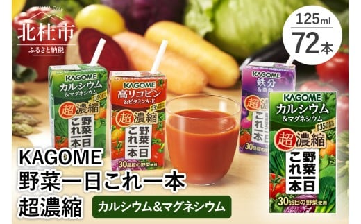 - カゴメ 野菜一日これ一本 超濃縮 カルシウム&マグネシウム 125ml 紙パック 72本入 (野菜ジュース) 濃縮ジュース 名水仕込 無添加 これ1本 野菜不足 350g 30品目 健康志向 飲料