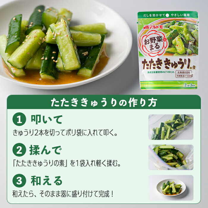 - 【ふるさと納税】お惣菜の素 お野菜まる 詰合せ <10個セット> たたききゅうり 塩キャベツ もやしナムル 塩味調味料 だし 出汁 鰹節 たれ タレ 野菜 一品料理 おかず マルトモ海幸倶楽部【しばたの未来】sh021