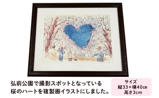 - 【寄附金額見直しました】弘前公園 桜のハート 複製画 イラスト1枚(額縁付き)