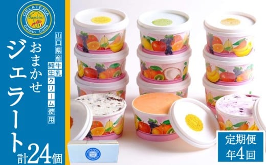 - 【定期便4回】 ジェラート おまかせ セット 6個 × 4回 計 24個 ( アイス アイスクリーム スイーツ デザート 詰め合わせ フルーツ 果物 季節 旬 ギフト 贈り物 プレゼント バニラ チョコレート 抹茶 カップ 食べ比べ 手土産 ) 下関 山口